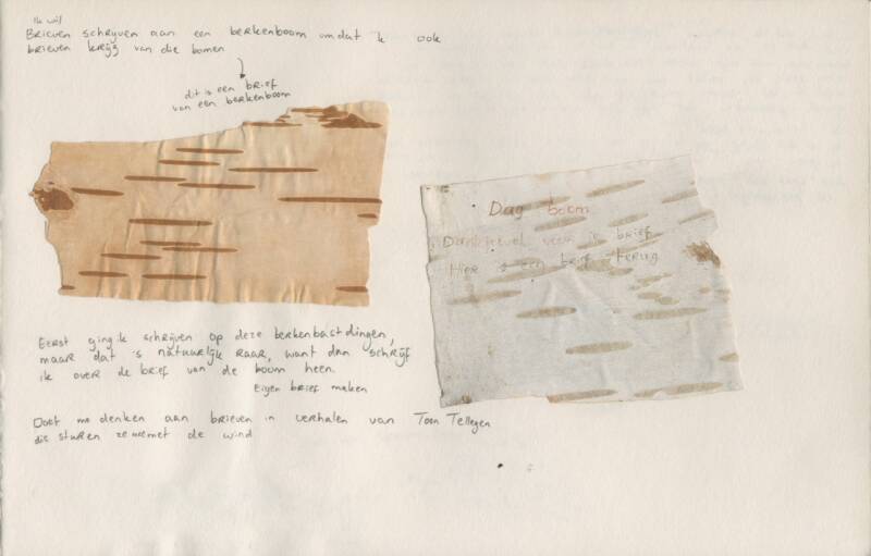 Altijd als ik een berkenboom zie, waarvan de bast een beetje loslaat, dan stel ik mij voor dat de boom brieven schrijft aan de wereld. Het leek mij niet meer dan beleefd om eens een brief terug te schrijven.